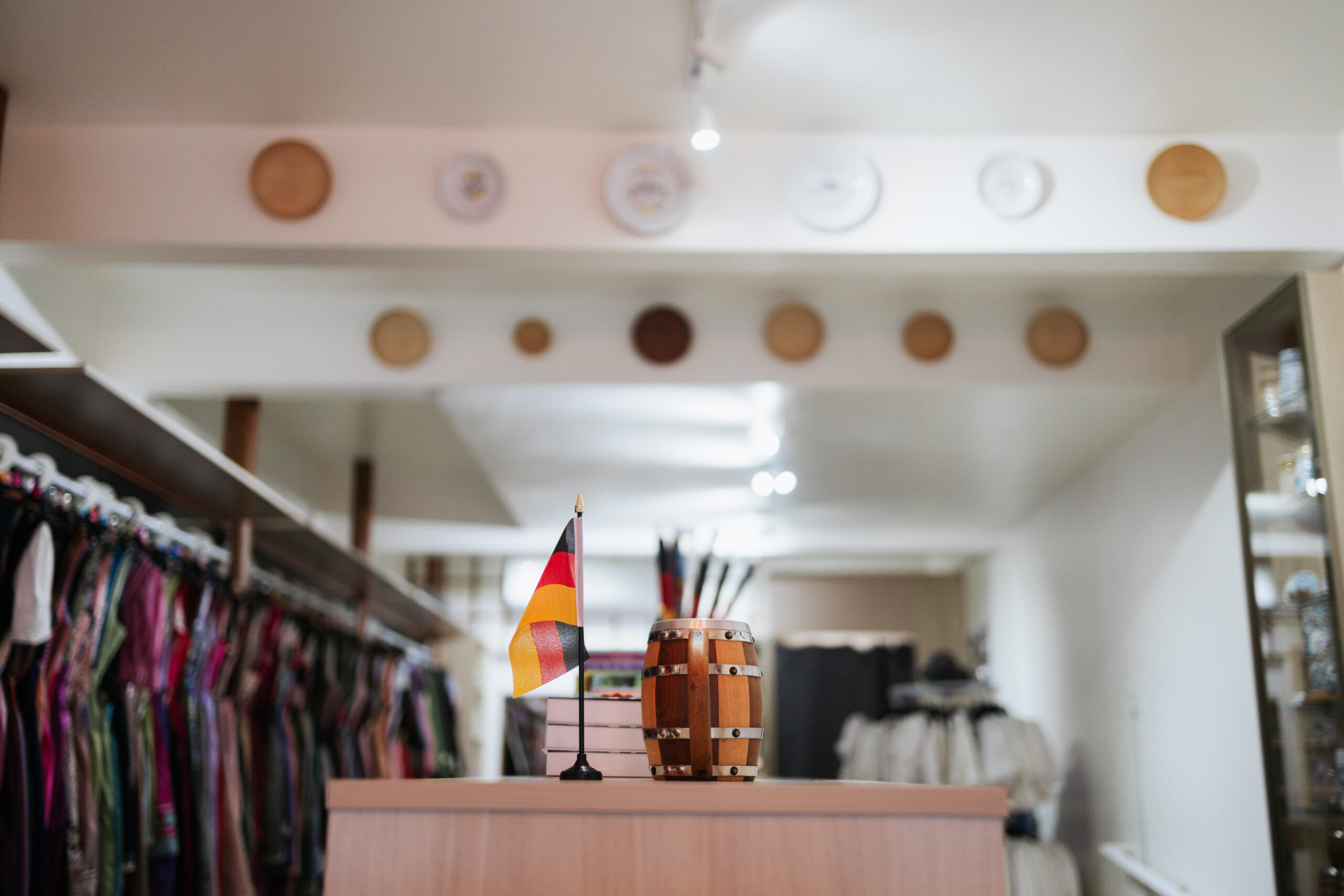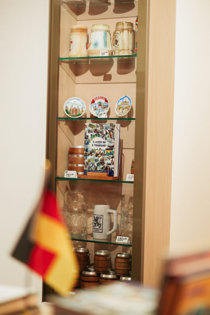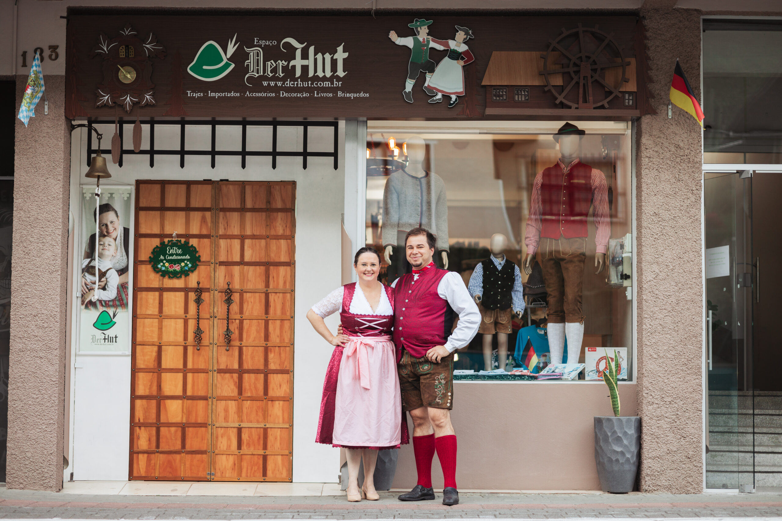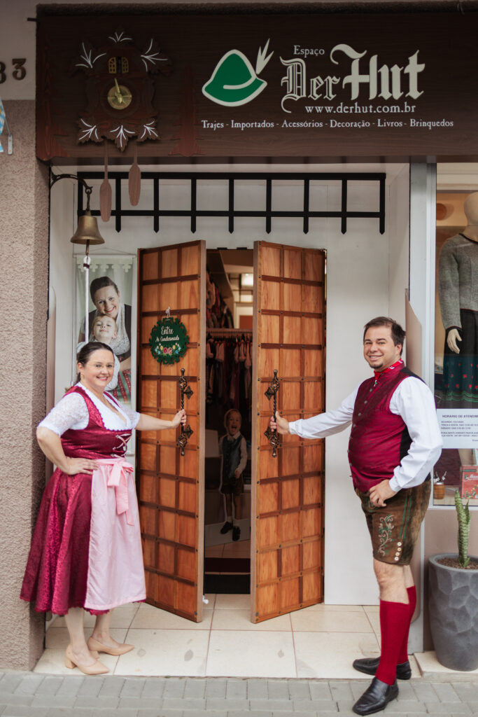 Quando completamos 20 anos de existência, em 15 de novembro de 2023, uma nova porta se abriu par o DerHut: nosso Espaço temático. Mais que uma loja, é o local onde ofertamos para a comunidade materiais de destacada qualidade repletos de tradição. Trajs típicos, importados, acessórios, brinquedos, livros, … fazem parte da nossa gama de produtos.